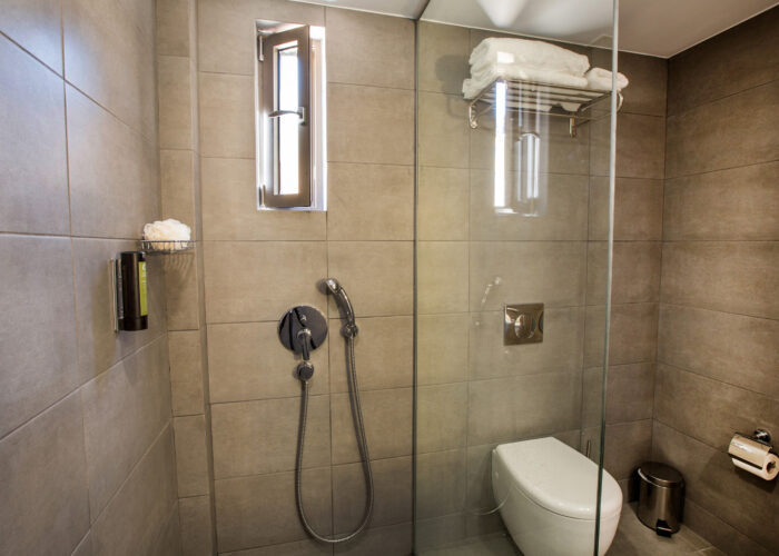 - Bathroom with glass shower cabin